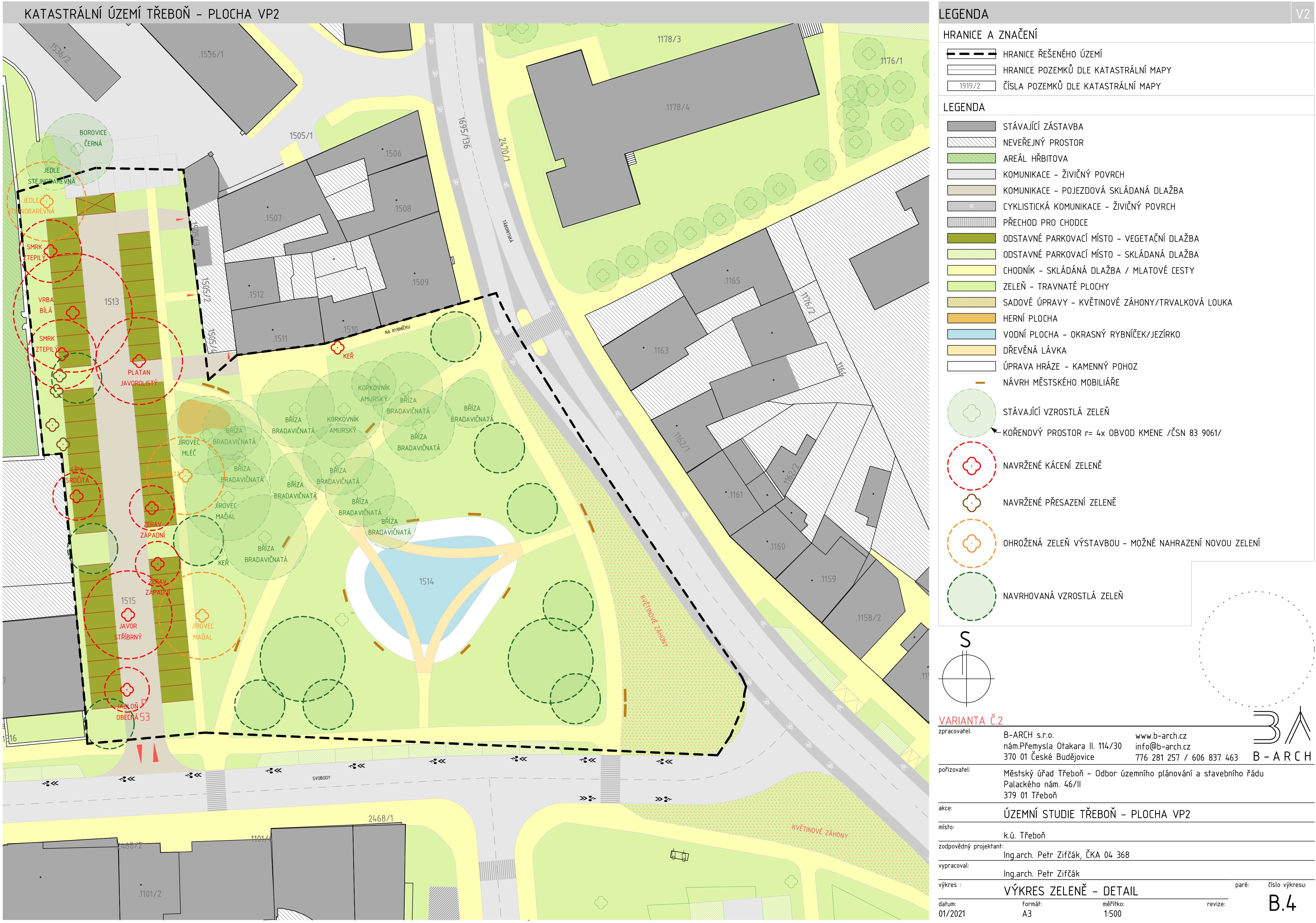 Návrh řešené lokality spočívá v zatraktivnění stávající zanedbané lokality veřejné plochy. Důraz je kladen na kvalitu a jasně vymezené řešení městské zeleně, která má sloužit k odpočinku a relaxaci obyvatel a návštěvníků využívajících služeb uvedených v širších vazbách této kapitoly. Vzhledem ke své důležité poloze má úprava lokality ambici reprezentativního ztvárnění městské zeleně jak z hlediska estetického, tak i z hlediska ekologického, technického a ekonomického řešení.