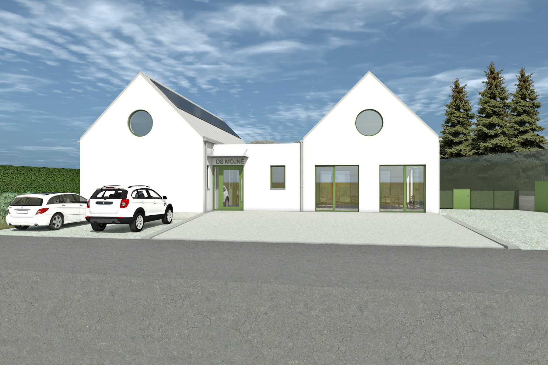 Novostavba objektu dětské skupiny v obci Mojné je navržena pro kapacitu do 12 dětí ve věku 1–3 roky. Architektonické řešení vychází z jednoduchého uspořádání několika menších hmot, které svým měřítkem i formou navazují na tradiční venkovskou zástavbu.