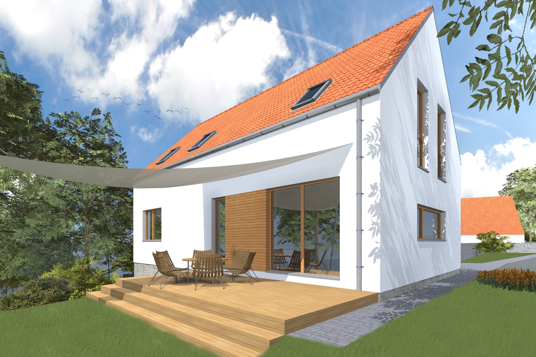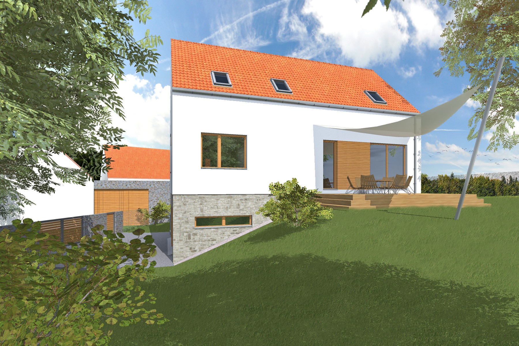 Architektonické řešení pracuje s jednoduchou hmotou a střídmým materiálovým výrazem, který citlivě reaguje na venkovské prostředí i charakter místa.